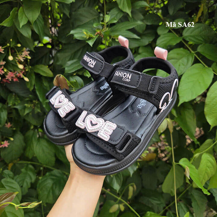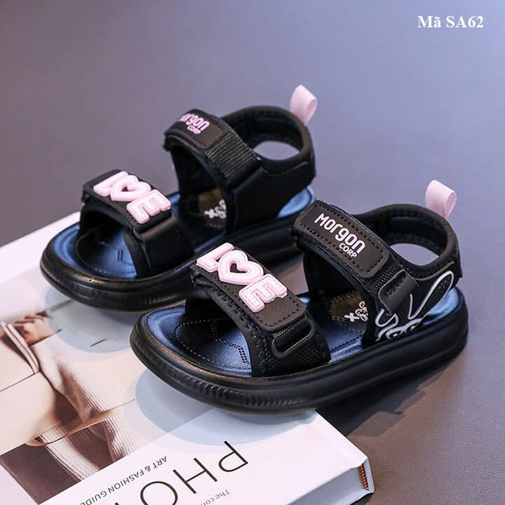 Giày sandal bé gái quai ngang màu đen từ 3-11 tuổi - SA62
